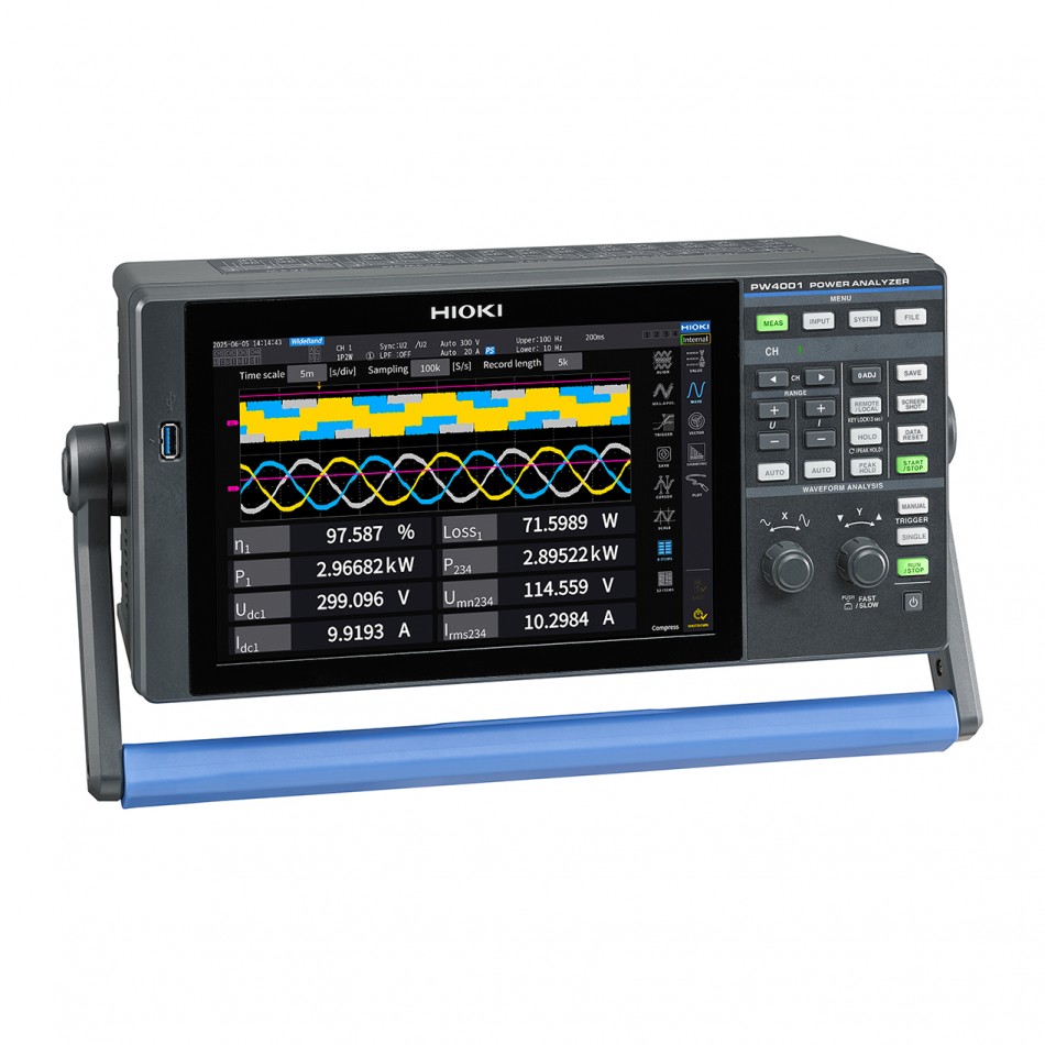 El Hioki PW4001 es un analizador de potencia de 4 canales, diseñado para proporcionar precisión de laboratorio en condiciones de campo. Combina alta exactitud, banda ancha de medición y robustez ideales para aplicaciones automotrices, laboratorios de desarrollo, sistemas de conversión de energía y más.